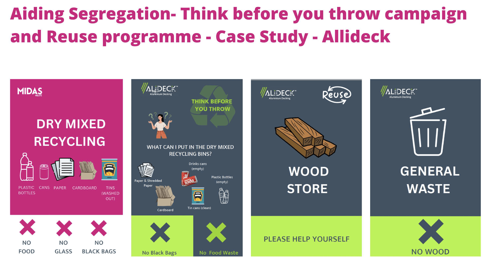 Via our ‘Think before you Throw’ campaign we can provide in-person or online training that is bespoke to your business model, helping your team to understand the monetary and environmental costs of poor waste management and the benefits of implementing the changes we suggest. We will create clear signage and resources that reinforce these messages, encourage the correct practises, and ensure the right bins are always available where most effective throughout your location.